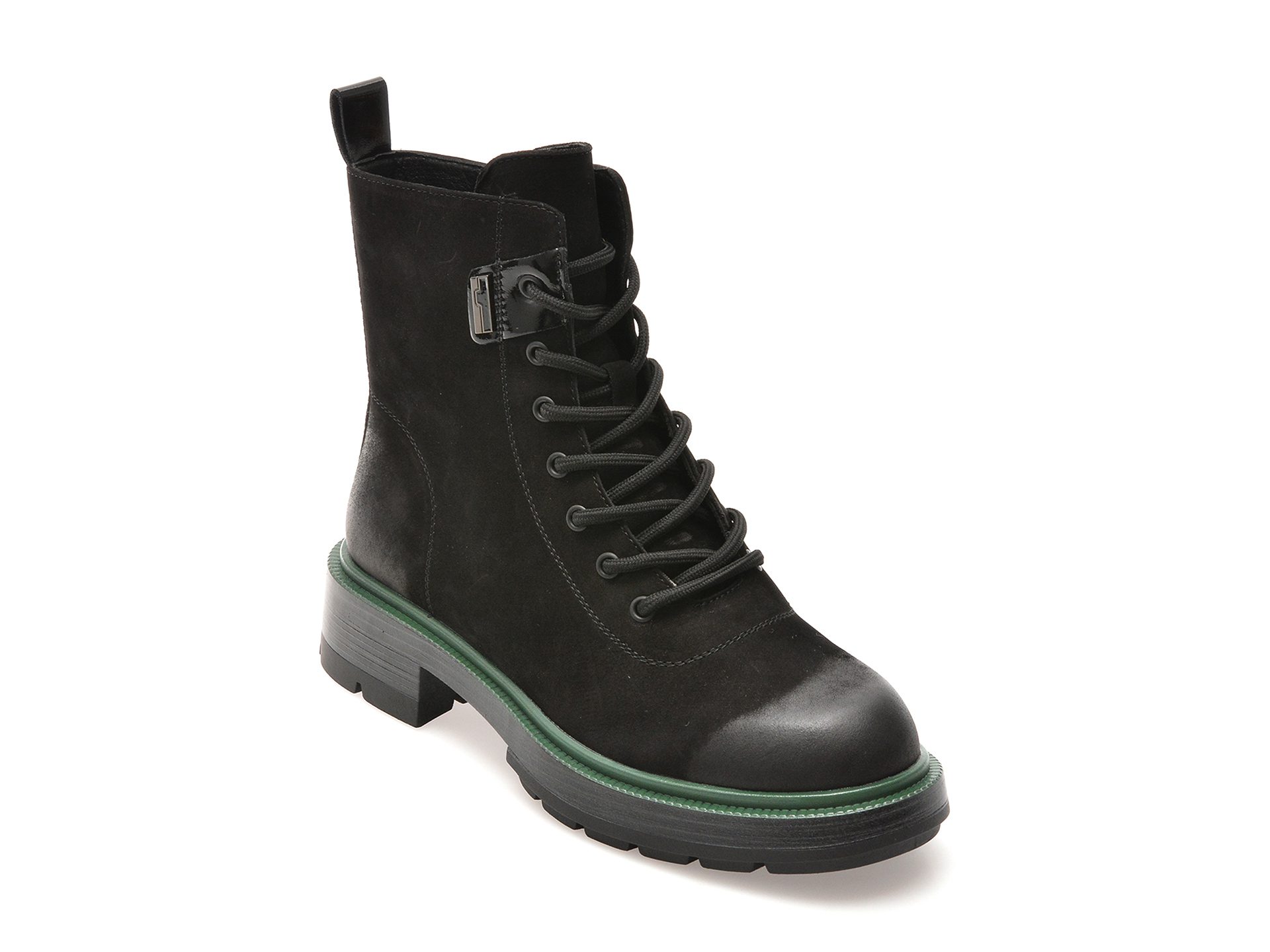 Designul rafinat al acestor ghete este completat de un sistem de inchidere cu siret, care asigura o fixare perfecta si ajustabila pe picior. Talpa din cauciuc termoplastic ofera aderenta si amortizare excelenta, facandu-le ideale pentru purtarea pe termen lung, chiar si pe suprafete umede sau alunecoase. Inaltimea moderata a tocului asigura un echilibru ideal intre stil si confort, fara a compromite ergonomia.